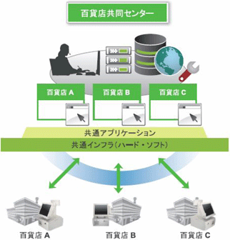 百貨店システムをクラウド化したサービスで、導入から利用開始後の運用管理や運用支援までのプロセスを一括して提供する。