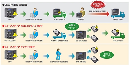先出しセンドバック保守は、従来のHDDレスモデルにHDD搭載モデルを追加し、3年と5年のメニューを用意した。万が一の障害発生時には、同社から代替機や交換用のHDDを発送する。また、オンサイト保守は、HDD搭載モデルを対象とし、3年、4年、5年のメニューを用意。障害発生時には、同社から保守作業員が設置先を訪問し、修理交換に対応する。