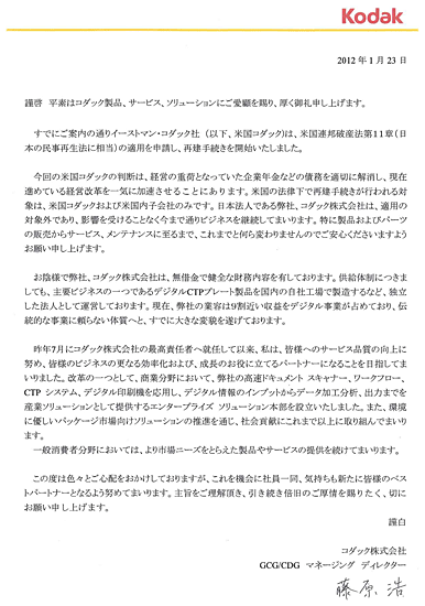 コダック日本法人、米コダックの民事再生適用申請で声明、日本法人は変わらず事業展開