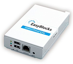 数十台のパソコンによるインターネットアクセスが集中したとき、処理速度の低下を改善する専用機器。学校では、授業で生徒が同じウェブサイトを同時に閲覧することで、処理速度が低下したり、アクセスエラーが起こったりすることが多いという。「EasyBlocks教育機関向けProxyモデル」は、アクセスに対してメモリのキャッシュ領域から応答することで、この課題を解決する。教育機関や学校向けのSIに強いITベンダーにニーズ調査を行ったうえで商品化した。