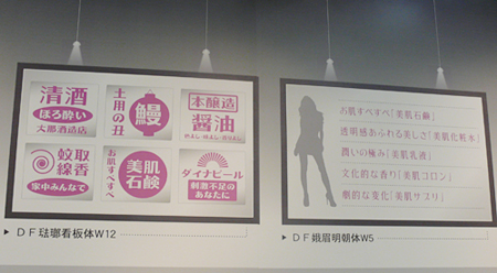 ダイナコムウェアは、「DynaSmart」シリーズの無償アップグレードキットとして、年内に提供する予定。新版には、ストロークが女性の眉毛のように見える「娥眉明朝体」を追加し、新しい書体として化粧品など女性向けの商品を扱う業界に提案していく。また、太い縦画を中心に細い横画払いを加えて昭和時代の懐かしい印象をもたせた「琺瑯看板体」、柔らかみをもたせた「UD丸ゴシック体」も追加する予定だ。