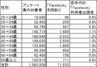 年齢別でみたFacebookの利用者数(出典:ニフティ、コムニコ)