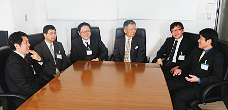 表彰式に先立って、指導教員による座談会が開催された。(左から)国立久留米工業高等専門学校の黒木祥光・制御情報工学科准教授、国立香川高等専門学校高松キャンパスの重田和弘・創造工学専攻・電気情報工学科准教授、国立東京工業高等専門学校の松林勝志・情報工学科教授、BCN社長の奥田喜久男、新潟コンピュータ専門学校の丸山一彦・副校長、愛媛県立松山工業高等学校の山岸貴弘・電子機械科教諭