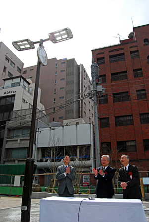佐久間公園は、大塚商会の創業地から徒歩3~4分。昨年、創業50周年を迎えた大塚商会はさまざまな社会貢献活動を行っており、佐久間公園の改修に合わせてLED公園灯2灯と桜の木1本を寄贈した。