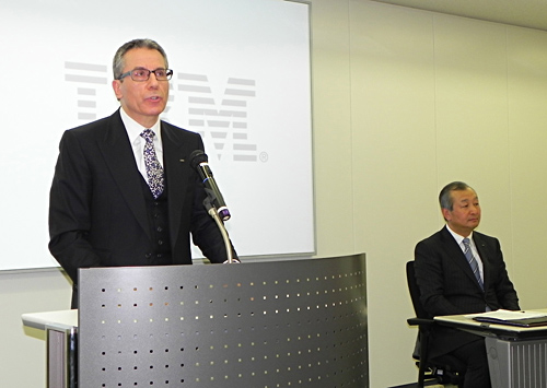 日本IBMの社長に就任する予定の米IBMバイスプレジデントのマーティン・イェッター氏(写真手前)と、日本IBMの橋本孝之社長
