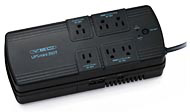 同社初のタップ型UPS。常時商用給電方式で、出力容量は350VA/210W、出力コンセントは6口を備える。210W負荷時に約4分のバックアップを行うことができ、消費電力150Wのパソコンなら約8分のバックアップに対応する。コールドスタート機能を備え、非常用のポータブル電源としても利用できる。