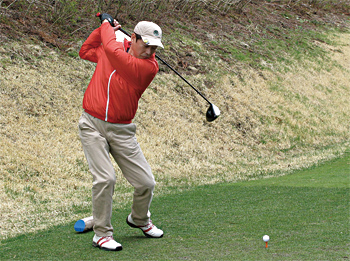 プレー終了後には懇親会を開き、前回と同様に日本ナレッジ製のレッスン分析装置「MVP2000」で撮影した写真と映像で参加者が自らのフォームチェックを行った。(谷畑良胤)
