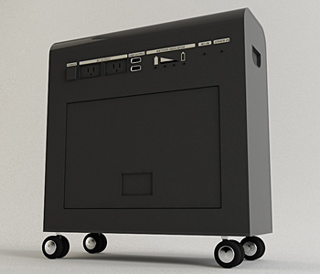 電池容量は432Wh、40型液晶テレビ(消費電力108Wh)で約4時間、デスクトップ型パソコン(消費電力120Wh)で約3.5時間使用でき、スマートフォンなら約30台分を充電することができる。