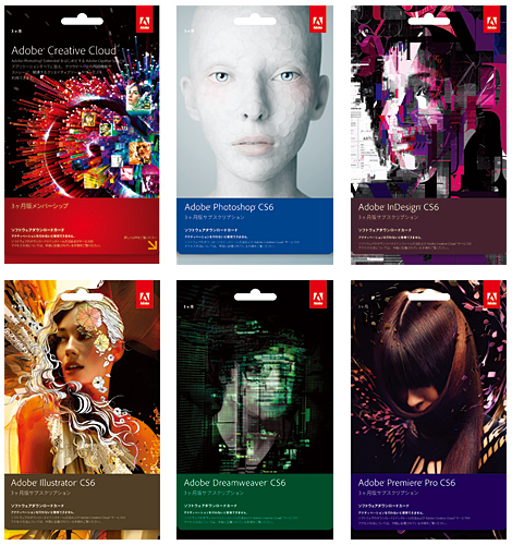 「Adobe Creative Suite 6」単体製品の各サブスクリプション「Adobe Photoshop CS6」「Adobe InDesign CS6」「Adobe lllustrator CS6」「Adobe Dreamweaver CS6」「Adobe Premiere Pro CS6」の実勢価格は、いずれも12か月版が2万7720円前後、3か月版が6930円前後の見込み。