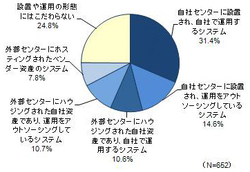 クラウド化に着手するシステムの優先順位については、「自社センターに設置され、自社で運用するシステム」を挙げた回答者が31.8%で最も多く、「外部センターに設置されたシステム」を上回った。また、外部センターに設定しているシステムのなかでも、ハウジング(自社所有)のシステムから優先的にクラウド化する意向があることが明らかになった。