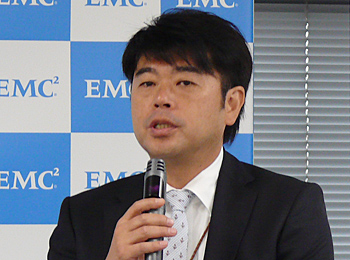 EMCジャパンは、バックアップ/リカバリの製品を拡充することで、ユーザー企業のテープバックアップからの脱却を促している。遠井雅和BRS事業本部長は、「日本には、システム復旧やデータ復旧に自信がないユーザー企業が多い」と述べたうえで、「世界で2万件超の販売実績をもつ当社の重複排除ストレージで、ユーザー企業の不安を解消する」とアピールした。(佐相彰彦)