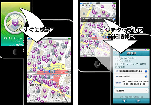 Agoop、Wi-Fiスポットをすばやく検索できるiPhoneアプリ「Wi-Fiチェッカー」