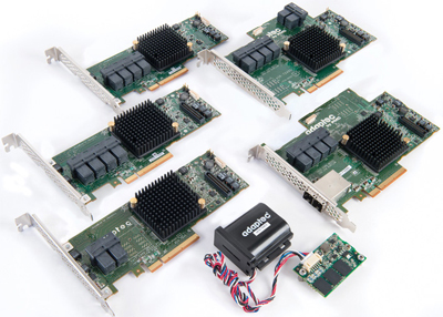 さらに、既存のストレージを「Adaptec7 シリーズファミリ」に接続するために、幅広い種類の高密度(HD)mini-SASケーブルを提供する。