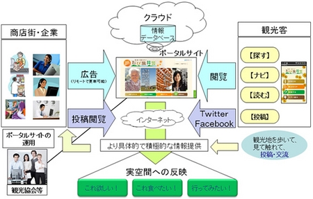 観光サイト「たび旅井笠」では、井笠地域の見所や観光ツアーなどの観光情報を、地域住民が中心となって紹介し、観光産業を振興。観光アプリケーションは、TwitterやFacebookなどのSNS(ソーシャル・ネットワーキング・サービス)と連携し、旅行者が感想や写真を投稿して情報を共有する。(真鍋武)