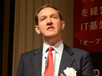 続いて、米レッドハットのジム・ホワイトハーストCEOが「情報の大変革とテクノロジの標準化」と題して基調講演。「フォーチューン500企業の約80%が、レッドハットを利用している。またレッドハットは、OSS専門の企業として初めて売り上げ10億ドルを達成した。今後は13億ドルを目指す」と業績をアピールした。