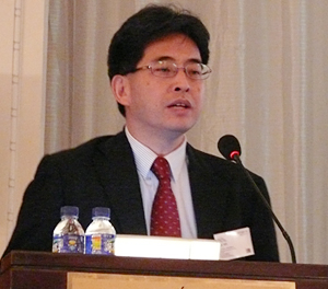 ゲスト講演には、NTT DATA(中国)の岡野寿彦董事副総裁兼中国事業総経理が登壇。「中国IT市場への参入方策(事例に基づく一考察)」と題して、「中国参入に必要な要素は、戦略とブランド力と実績を高めたうえで、初めて自社の強みや商品、サービス品質などの『コアコンポーネンツ』、パートナーリングなど市場での『ポジショニング』、現地で優秀な人材を確保する『人材・組織』が成立する」と指摘した。