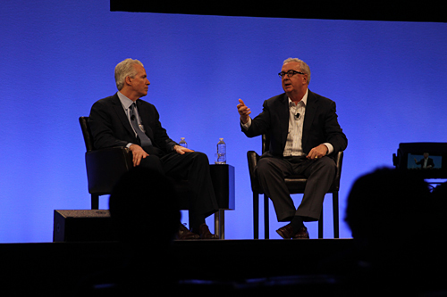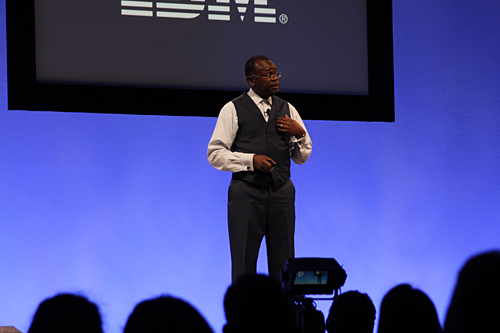 ISV関連では、ISVとディベロッパー担当のジム・コーゲル ゼネラルマネージャーが、司会のヘネシー ゼネラルマネージャーとともに登壇。対談形式で、事例を交えながら協業するISVとのエコシステムなどについて議論した。コーゲル ゼネラルマネージャーは、「ソーシャルからアナリティクス、グローバル・ビジネスまで、IBMとISVパートナーは、製品や提供方法などのストーリーを一緒につくっている。10年ほど前までは、ISVがパートナーが仕事した成功例をみて、IBMは後から立ち上がっていた」として、パートナーとエコシステムを築き、一体となって市場拡大に向けて動く方針であることを告げた。