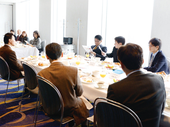 BCN(奥田喜久男社長)は、2月19日、ワンビ(加藤貴社長)の特別協賛を得て、参加者が朝食を共にしながら特定の話題について議論する「モーニングラウンドテーブル(朝食の円卓会議)」を初の試みとして開催した。対象はシステムインテグレータ(SIer)で、マーケティング担当や営業担当など10人が参加し、今回の議題であるスマートデバイスの法人利用について活発に意見を交わした。