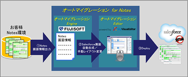 富士ソフト(坂下智保社長)は、4月10日、IBMのグループウェア「Lotus Notes/Domino」から営業支援CRMの「Salesforce」への移行を自動化するパッケージソフト「オートマイグレーション for Notes」を、6月をめどに発売すると発表した。ソフト開発のテラスカイと共同で開発した。