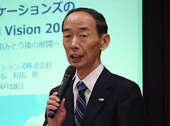 NTTComは、2011年10月に「Global Cloud Vision」を発表。00年に売り上げの約9割を占めていた音声通信とネットワーク事業の収入が毎年減少していることから、クラウドサービスに事業を転換し、ネットワークやデータセンター(DC)などのインフラからアプリケーション、運用管理サービスまで、トータルでグローバルのユーザーのICT環境を支援する戦略を打ち出している。有馬社長は、「11年度(12年3月期)に約840億円だったクラウド/データセンター(DC)事業の売り上げを、15年度には2000億円までに伸ばす」と目標を掲げた。