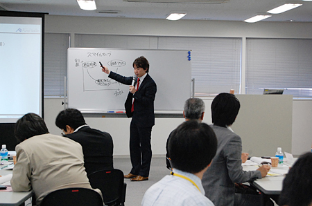 斉藤チーフ経営コンサルタントの講義を参加者は熱心に聴講