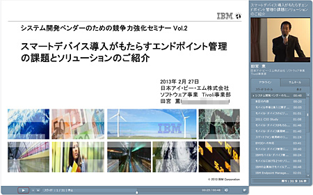 最後のセッションでは、日本IBMのソフトウェア事業Tivoli事業部の田宮薫氏がIBMのMDM(モバイル・デバイス・マネジメント)ソリューション「IBM Endpoint Manager for Mobile Devices」を紹介した。