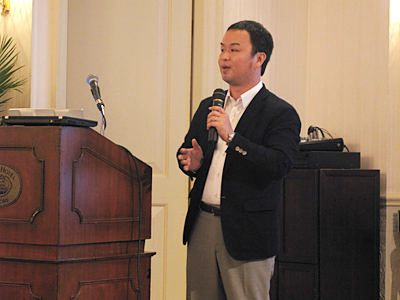 スーパーストリームの山田誠部長は、デモを交えて「海外拠点を含めた管理会計を行うにはERPが最適」と伝えた これを受けて、最後はスーパーストリームの山田誠マーケティング企画部長が、通信環境が脆弱な環境下でもインターネット・エクスプローラ(IE)ベースでストレスなく「SuperStream-NX」を扱えることをデモで見せた。「『SuperStream-NX』の既存顧客は4分の1が海外拠点を設けている。現地の安価な会計ソフトでは、日系企業が必要とするセグメント別の管理会計やグローバル会計ができない」と説明。中国で政府公認の会計ソフトを開発・販売する用友と金蝶に「SuperStream-NX」は対応し、中国政府が示す勘定科目に応じて中国現地で会計処理・報告ができ、日本本社では日本の会計で財務状況を把握できるようにしたことを報告した。