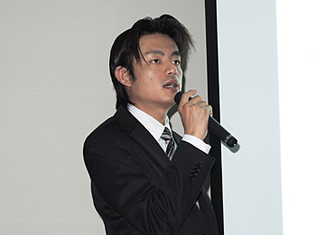 エスキュービズム ソリューション事業部の岩井源太アカウント営業部長 法人向けのスマートデバイスアプリ開発プラットフォーム「seap」を展開するジェナの手塚康夫社長は、iOSの業務活用でニーズが高い自社専用アプリの作成を支援する「seap」の概要を説明。「とくに取扱商品数が多い商社やメーカー、対面での接客業務がある小売業、高額商品を販売する高級ブランドなどで活用事例が拡大している」と、市場の状況を分析した。(本多和幸)