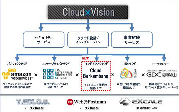 TISは、「Cloud×Vision」のサービスブランドの下、エンタープライズクラウド「T.E.O.S.」や中国でのクラウドサービス「飛翔雲」、首都圏や関西圏での自社運営のDCサービス、パブリッククラウド「Amazon AWS」などを提供している。「Cloud Berkembang」も「Cloud×Vision」のグローバルサービスの一環として提供するもので、これを足がかりにASEANの他地域でのクラウドサービス展開を視野に入れる。