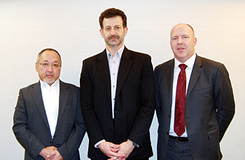 来日した米本社のガス・マレジス副社長(中央)と、ショーン・サンズ・シニアディレクター(右)、日本法人社長の杉山富治郎氏