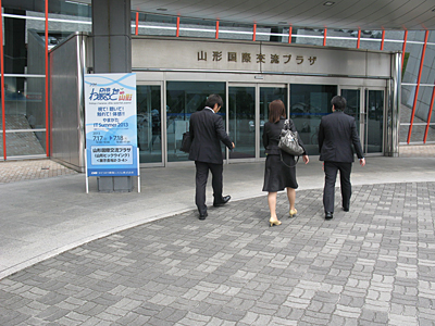 「DISわぁるど in 山形」の会場となった山形ビッグウイング。初日は800人以上が来場した 出展したのは、PCモバイルやサーバー・ストレージ、ソフトウェア、教育ICT、ネットワーク・セキュリティ、プリンタなどに関連する111社。DISは2日間で1000人以上の来場を見込んでいるが、初日だけで800人を超えた。山形県内の事前登録だけで1000人を超え、地元の販売会社がユーザー企業を同伴するケースが多いという。