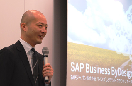 「SAP Business ByDesign」は、会計管理や人事管理、購買管理、プロジェクト管理、生産管理、在庫管理、販売管理など、35の業務プロセスをカバーする統合型のビジネススイート製品。海外では2007年に提供を開始し、すでに16カ国/1000社での導入実績がある。日本市場への投入が遅れた背景を、バイスプレジデントでクラウドファースト事業本部の馬場渉本部長は「数年前までは基幹業務をクラウドでやりたくないという声が多かったが、ここにきて変わってきた。今が非常にいいタイミングだ」と明かした。