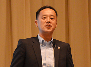 次に、農業生産法人・舞台ファームの針生信夫代表取締役が、「宮城県発 日本農業の新しい未来像を創る~ 『イノベーション』 と 『コラボレーション』 ~」と題して、農業の問題点や解決策について講演。「日本の農業従事者数は、現状では250万人程度だが、平均年齢は65.8歳と高く、3年後には70万人が辞めてしまうといわれている。人材不足は深刻な問題で、放置される農地も増えている。農業を魅力的なものにするためには、生産利益の向上が必須だ。そのためには、新しい付加価値の付与や、異業種との積極的なコラボレーション、生産者による地域を越えた大連携が欠かせない」とした。