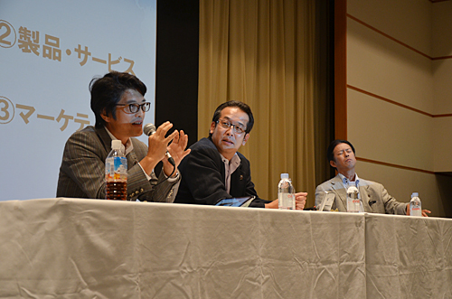 長谷川会長は、グローバルビジネスについて、「クラウドサービスを活用すれば、爆発的に販売を伸ばすことができる。地方のITベンダーも、ここに可能性を見出してほしい」とした。阿部社長は、「和包丁やウォシュレットなど、外国で評価されている日本製品はいくつもある。同じように、ソフトウェアでも、今あるものをよりいいものに磨いていって、海外でも通用するものにしていくことが大事」とした。荒井社長は、「クラウドでチャンスは広がっている。地域に限定されずに提供できるので、お客様のいるところにかまわず売りに行けばいい。また、ニッチな市場で勝負すれば、地方ITベンダーでも大手企業と対等に競り合うことができる」と語った。青木教授は、「震災以降、大学でも復興関連のプロジェクトが複数動いていて、民間企業を支援しようとする意識は高まっている。IT企業と協業して、一緒に海外で展開していきたい」と語った。