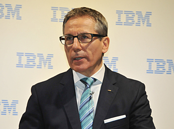 10月7日、都内のホテルで開いた記者会見で、マーティン・イェッター社長が日本IBMのビジネス戦略の概要を語った。2012年5月に社長に就任してから、2回目の会見対応だった。司会進行役は、これまでの広報担当ではなく、日本IBMのジョン・ロビソン専務執行役員。司会進行をすべて英語で行う異例の形式で、日本IBMの“国際色”をアピールした。