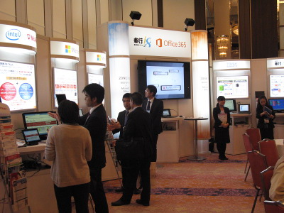 例えば、「情報活用ゾーン」のインテルのブースでは、Windows 8に対応した最新会計ソフト「奉行i8」とインテルのセキュリティ基盤「スモール・ビジネス・アドバンテージ(SBA)」を搭載したタブレットPCで、マイクロソフトのクラウド型オフィス製品「Office 365」を駆使して行う経営分析が提案されていた。