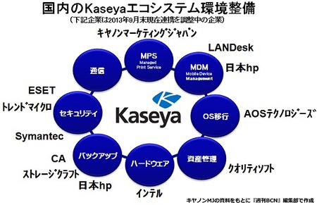 キヤノンマーケティングジャパン(キヤノンMJ)は、クライアント端末管理ソフト「Kaseya(カセヤ)」を軸に関連ベンダーとの連携を強化する。「Kaseya」をパソコンやスマートデバイスを統合的に管理できるプラットフォームとして機能させ、関連するベンダーとの協業を推進。クライアント管理領域でのシェア拡大を目指す。