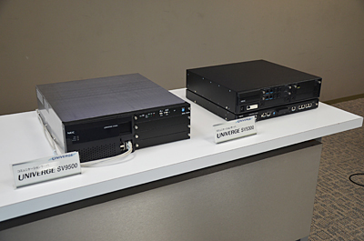 「SV9500」は中・大容量のコミュニケーションサーバーで、ユニファイドコミュニケーション(UC)機能を融合した「UCサーバモデル」と既存のPBXや電話機を有効に活用できる「テレフォニーモデル」の2種類を提供する。「SV9300」は、小容量のコミュニケーションサーバーだ。