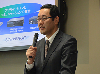 価格と出荷開始日は、「SV9500 UCサーバモデル」が未定/2014年3月、「SV9500 テレフォニーモデル」が50万円~/13年11月25日、「SV9300」が50万円~/13年11月25日。NEC企業ネットワーク事業部の野田修事業部長は、「現在の『UNIVERGE』の売り上げ規模は約1600億円で、グローバルシェアは第3位。これを15年には2000億円に拡大して、グローバルシェアを第2位にしたい」と目標を語った。