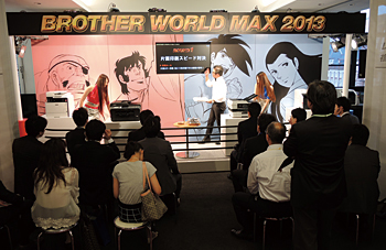 ブラザー販売(片山俊介社長)は、10月9日、自社製品の展示を中心とした年次イベント「Brother World Japan 2013 for Business」を、都内で開いた。これまでは、コンシューマ向けから企業向けまで、プリンタ製品を中心とする同社のラインアップ全般を紹介する総合展示会だったが、初開催から7回目を迎えた今年は「for Business」と銘打ち、ビジネス向けに焦点を絞った展示やイベントを行った。
