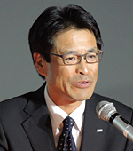 取締役 続いて、三島勉取締役が、同社の情報機器事業の方針や、展示のポイントなどを解説した。SOHO市場など、小規模事業所向けを中心に強みを発揮しており、「A4モノクロ、カラーレーザー複合機でシェア1位を獲得している」と、実績を強調。さらにプレゼンスを向上させるべく、積極的な製品開発と拡販活動に取り組んでいく意向を示した。