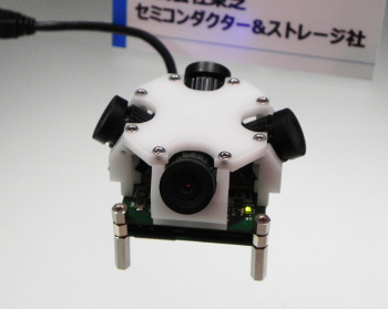 データ処理用のCPUを乗せた超小型カメラ このケースでは、ネットワーク上に流れるデータは、分析によって推測される性別、年齢、表情のパターン(笑っている、怒っている、無表情など)だけで、「データの量は映像とは比べものにならないほど小さい」(TSOLの吉川参事)ので、ネットワークやサーバーへの負荷を大幅に軽減できる。また、顔が写っている映像は含まないので不必要な個人情報を記録せず、個人情報やプライバシーの保護にもなる。