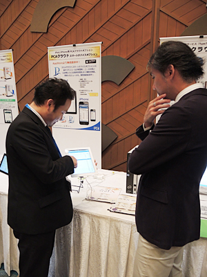 展示会場では、水谷社長が発表した「PCAクラウド スマートデバイスオプション会計Xモジュール」のコーナーで足を止める来場者が多かった。製品開発を主導した営業本部戦略企画部プロダクト企画グループの田邨公伸係長は、「なかなか会社に帰れない営業マンが外から使うことを想定して機能を盛り込んだ。日報やお小遣い帳のイメージで使うことができる。スマートデバイスオプションは『PCAクラウド』の補助ツールで、いままでのサービスにない機能を付加しないとつまらない。今後も、スマートデバイスとしての特性を意識して製品開発を進めていく」と製品を解説。参加パートナーの反応も上々だったという。