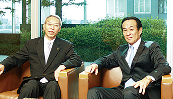 大塚商会の塩川公男取締役(左)と、レッドハットの廣川裕司社長