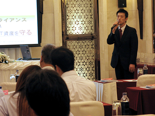 続けて、最初の基調講演に『週刊BCN』の谷畑良胤編集委員が登壇。「東南アジア地域のIT事情の今を解く」と題して、各国のIT事情を語った。このあと、日立製作所のITプラットフォーム事業本部ITマネジメントソリューション開発部の高橋亨主任技師が、「東南アジアにおける情報セキュリティ管理のポイント」のテーマで、日系企業が新興国で抱えている情報セキュリティの課題について説明した。
