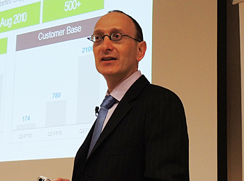 「Nimble Storage」は、SSDとHDDを組み合わせた低価格のハイブリッド型ストレージで、独自の特許技術によってハイパフォーマンスを実現する。10月末に、アセンテックが日本国内唯一のディストリビュータとして取扱いを開始した。グローバルでは、2010年の提供開始以来、約3年間で2100社以上の採用実績があり、日本市場では初年度200台の出荷を目標にしている。