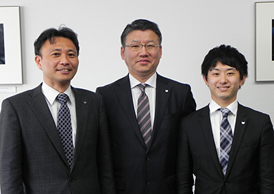 左から、キヤノンMJの月岡敦史氏、梶山良幸課長、松林辰祐氏 入力から出力まで、トータルで商材やサービスを揃えることで、製造業だけでなく、建設業、教育サービス、将来は医療領域まで、「幅広い業種・業務に応用できる商材に仕立てる」(ドキュメントソリューション企画本部ソリューション企画課の松林辰祐氏)という。
