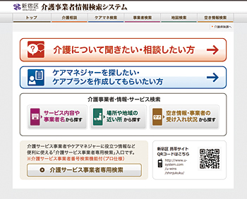 「けあプロ・navi」を活用した新宿区「介護事業者情報検索システム」の画面イメージ