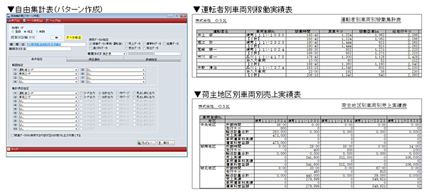 「SMILE BS2 トラックスター」は、運転日報の入力情報をもとに、売上げ・傭車料・経費の管理、請求業務の軽減に加え、車両や運転者の実績管理など運輸業に必要な業務全般をカバーする運輸業システム。最新版は、これまで提供してきた業務処理全般の機能に加え、顧客自身で項目を集計して帳票を作成できる自由集計表機能を搭載した。管理項目は多岐にわたり、運転者・車両・得意先などのカテゴリ別帳票が作成できる。