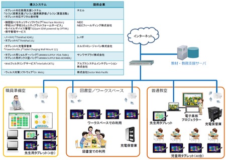 チエル(川居睦社長)とNEC(遠藤信博社長)は、レノボ・ジャパンなどと協力し、児童・生徒に一人1台のタブレット端末、デジタル教材、電子黒板・プロジェクタなど、最新のICT環境を効果的に活用する授業事例を共同で開発し、学校での日常的なICT活用のあり方を検証する実証研究を開始する。